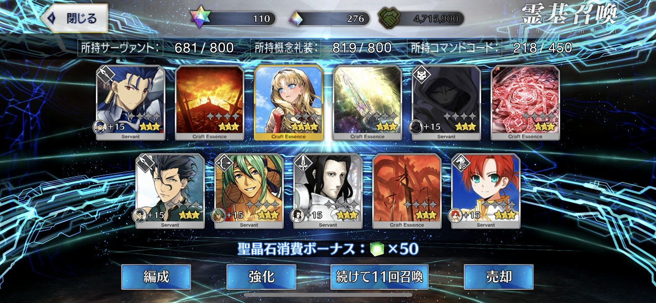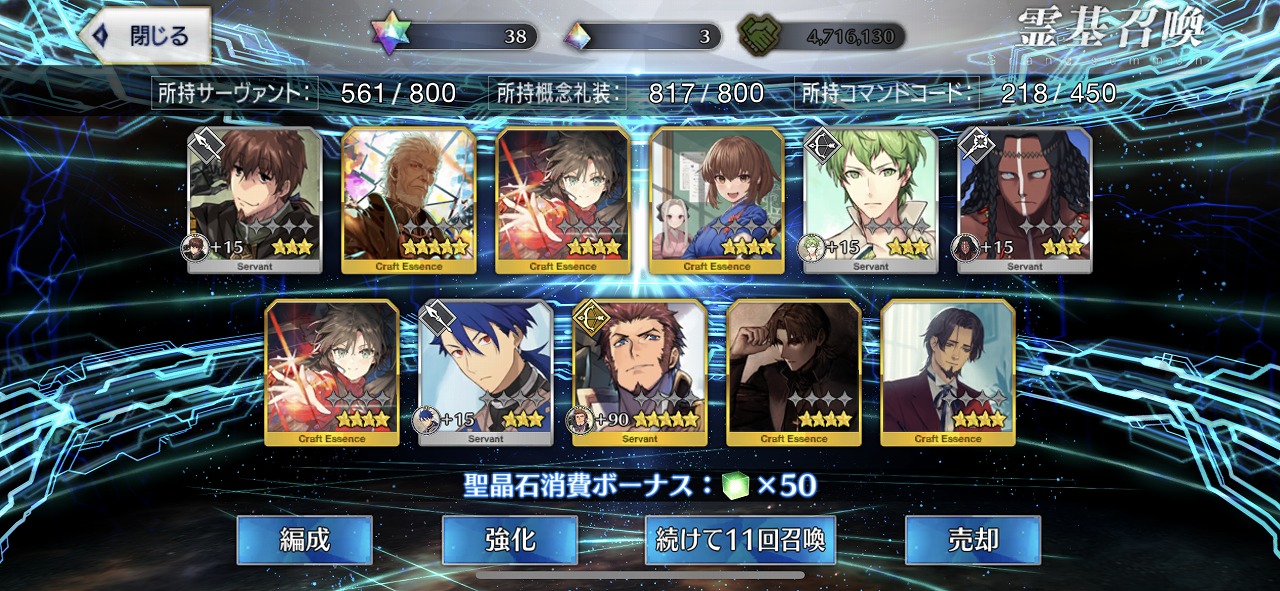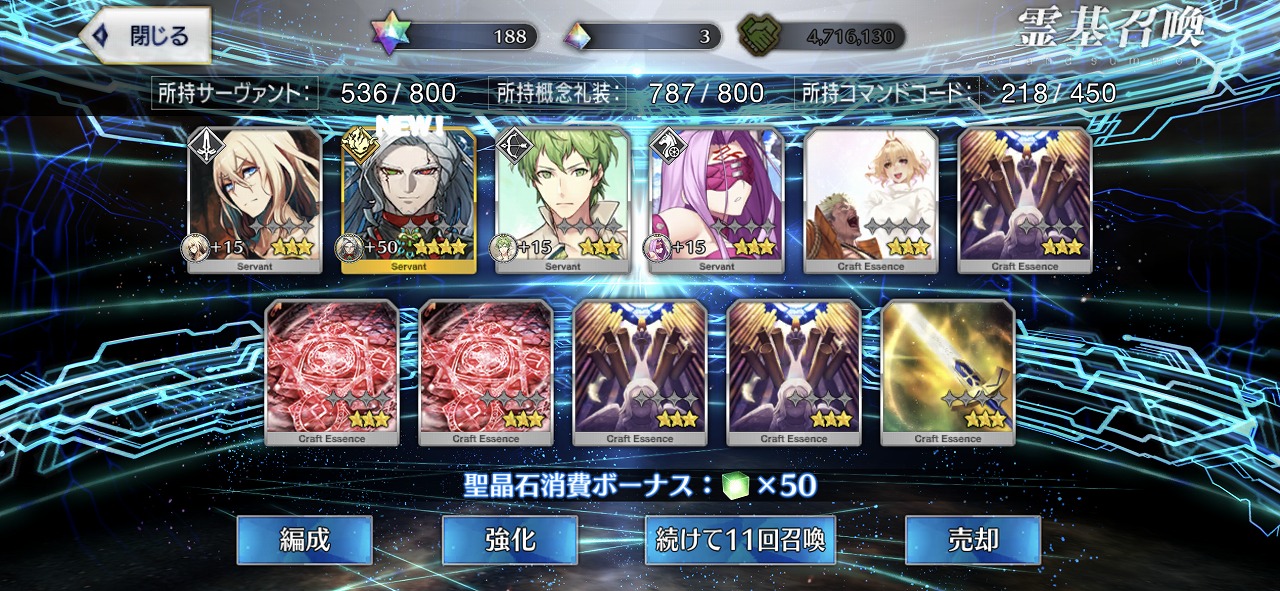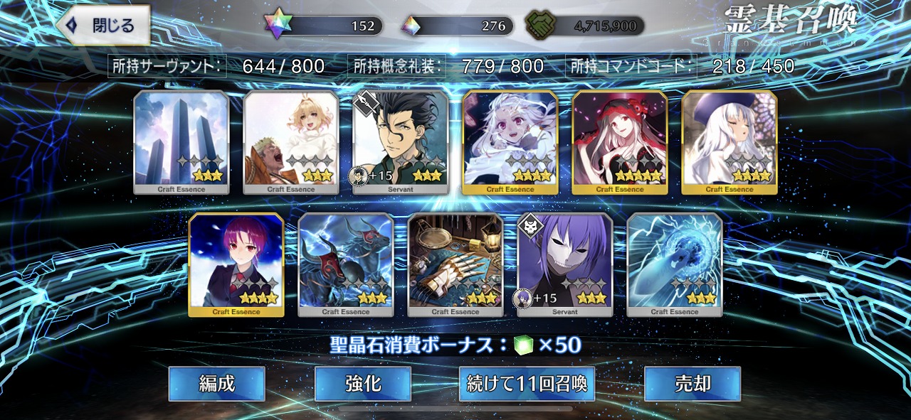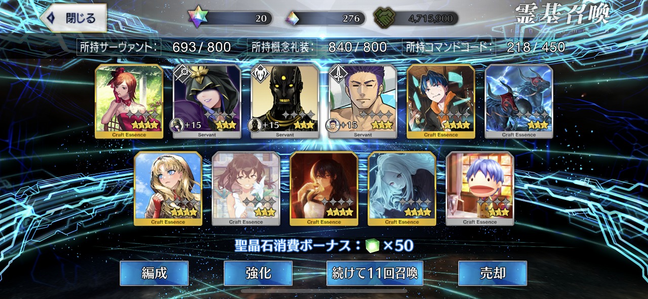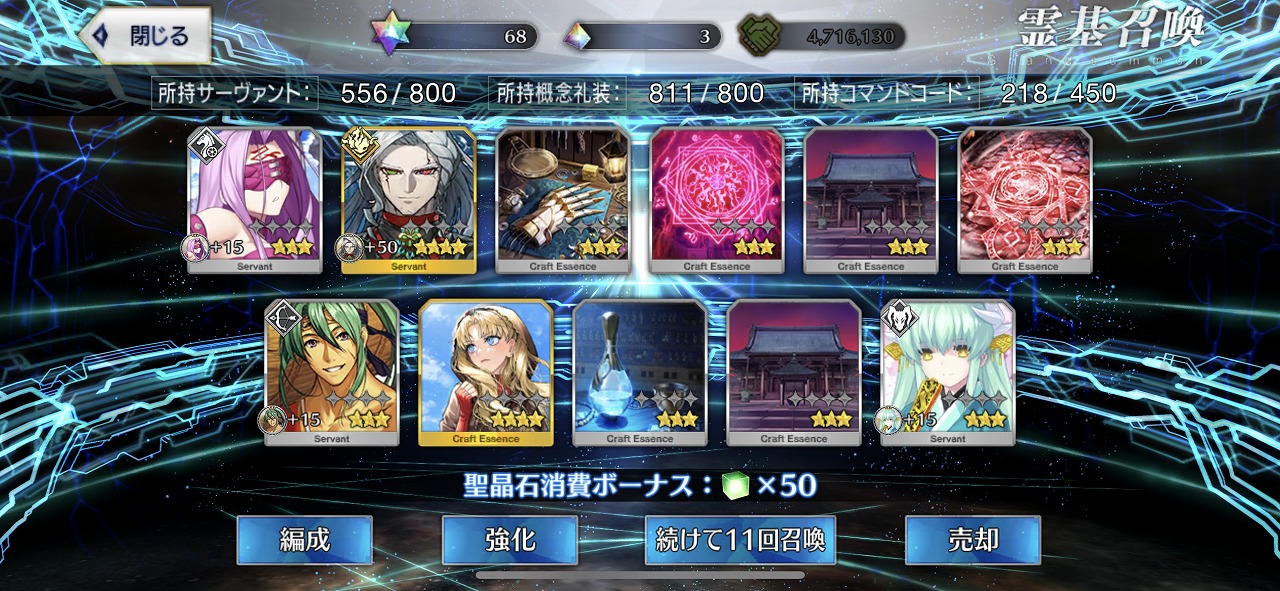 この引きはかなりの当たりではないだろうか。礼装もいい引きで個人的には満足のいく結果となった。