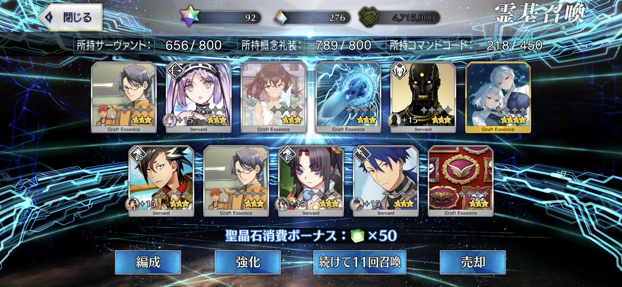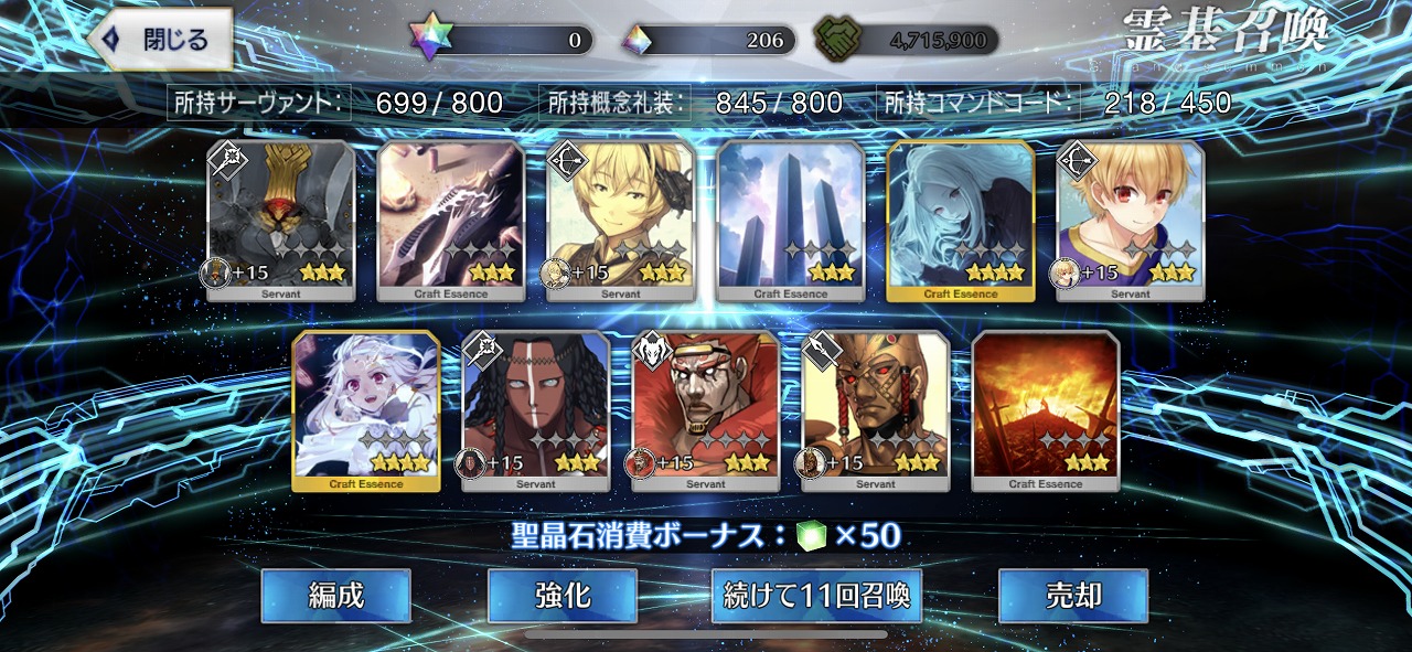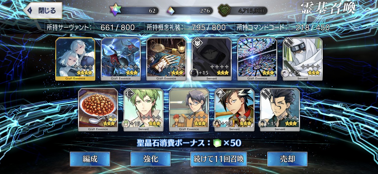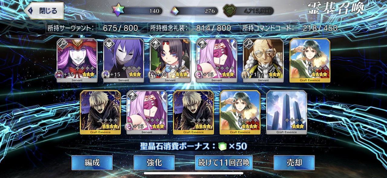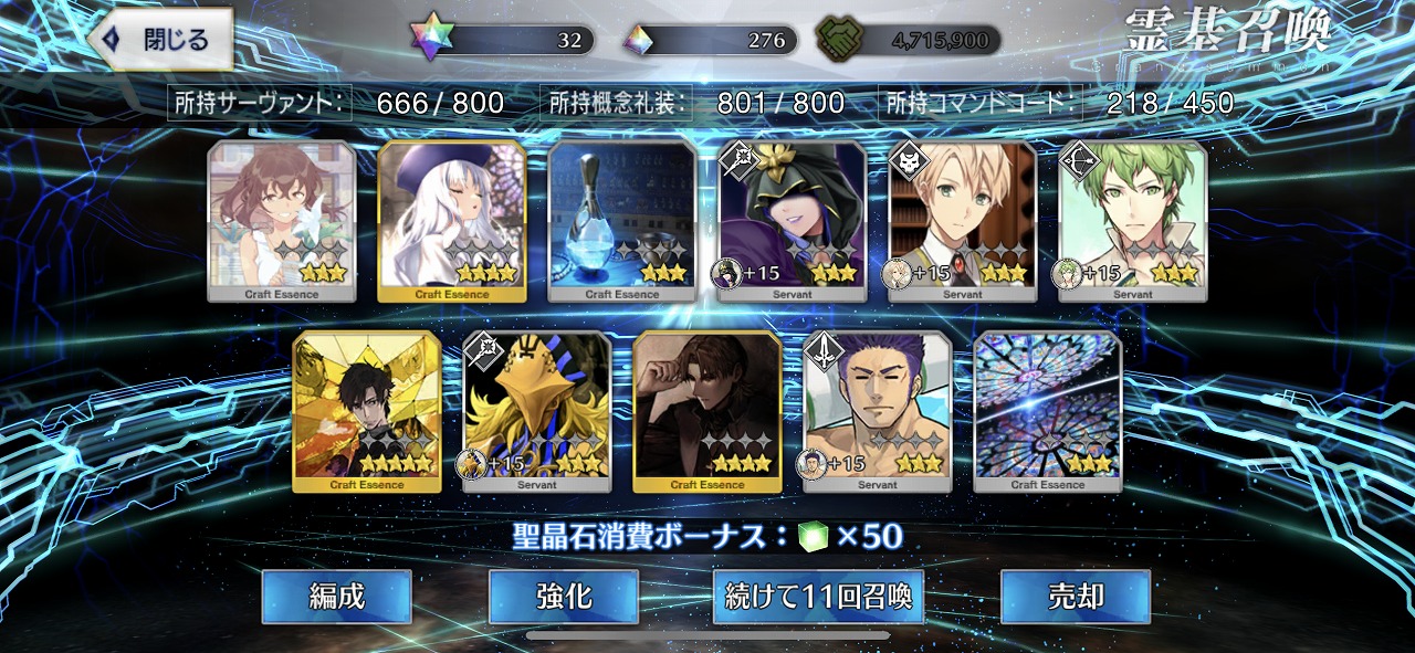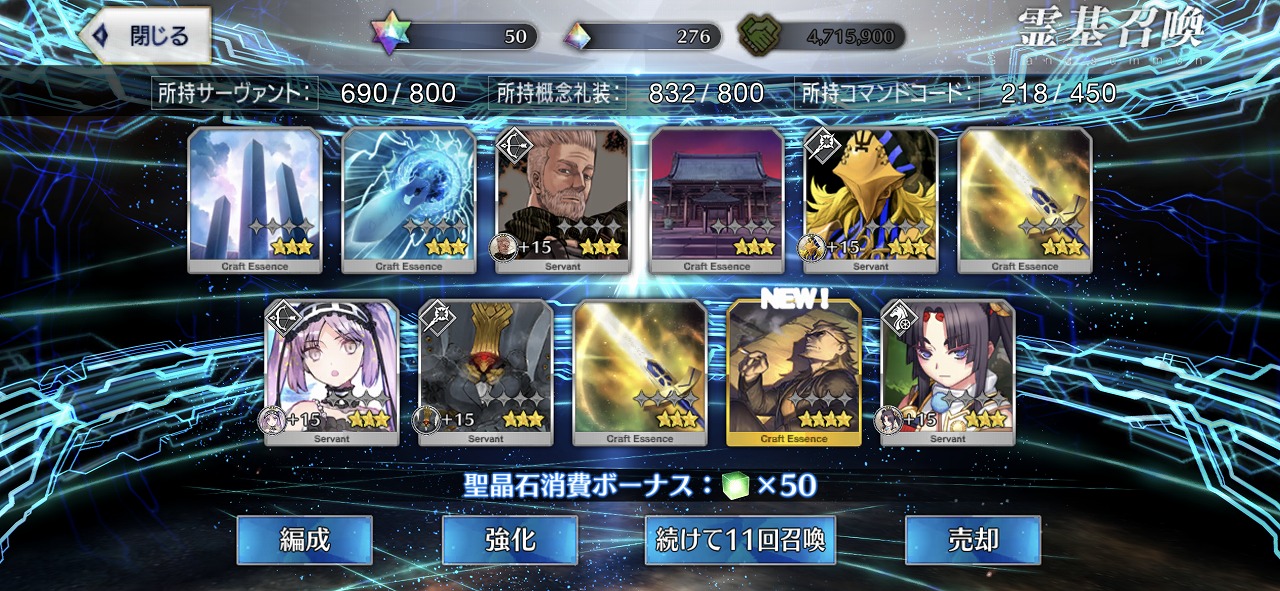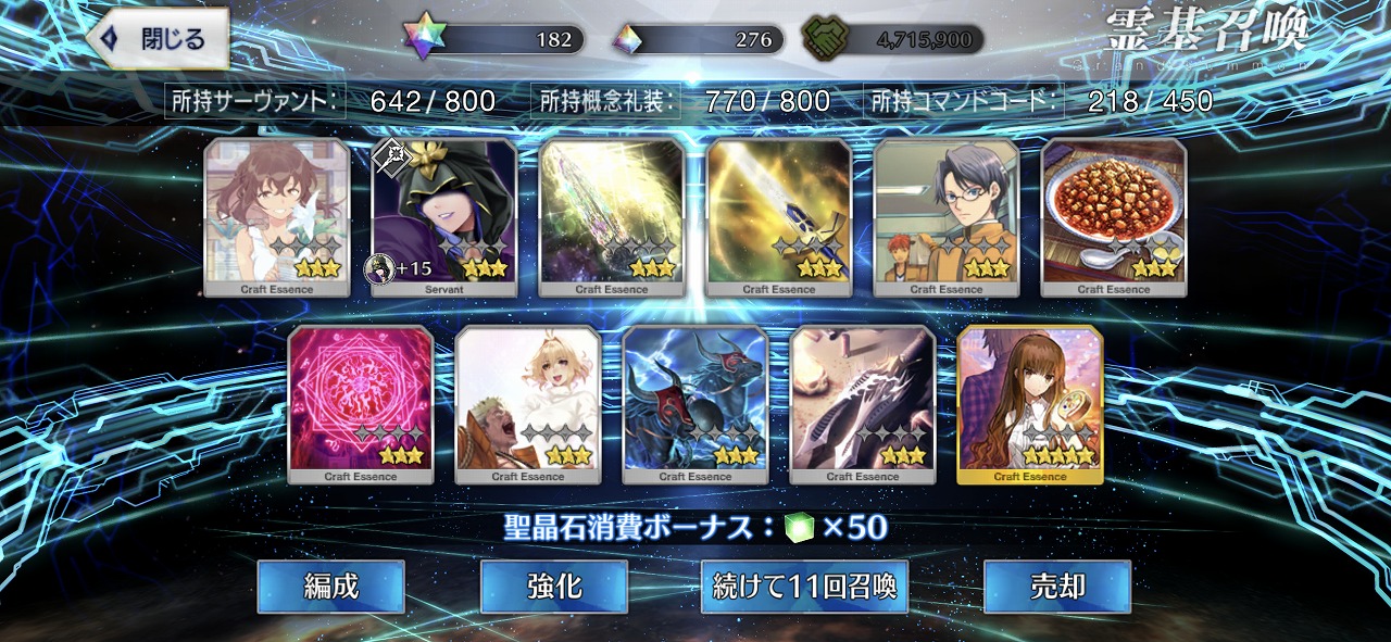 この引きはかなりの当たりではないだろうか。礼装もいい引きで個人的には満足のいく結果となった。