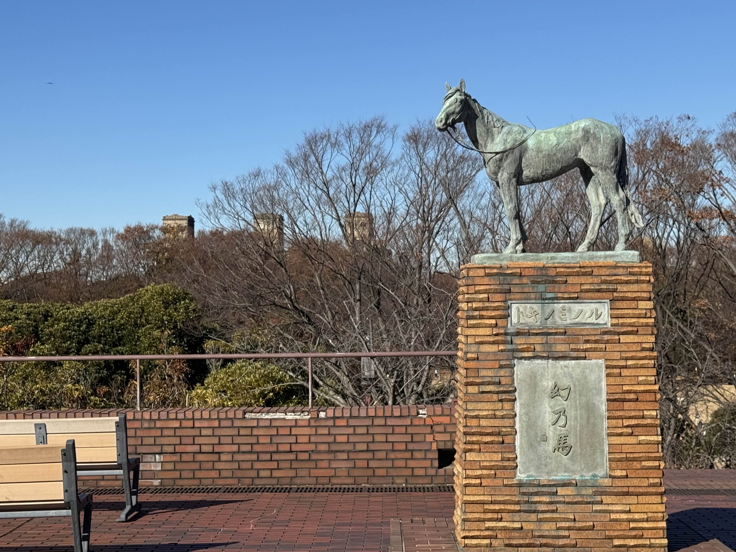 いまの横浜競馬場跡はシンザンやトキノミノルが見守る向こうにかつてのスタンドが覗く素晴らしい景観で、休苑に先立ってグランドフィナーレイベントが開催された12月15日はなかなか盛況であった。