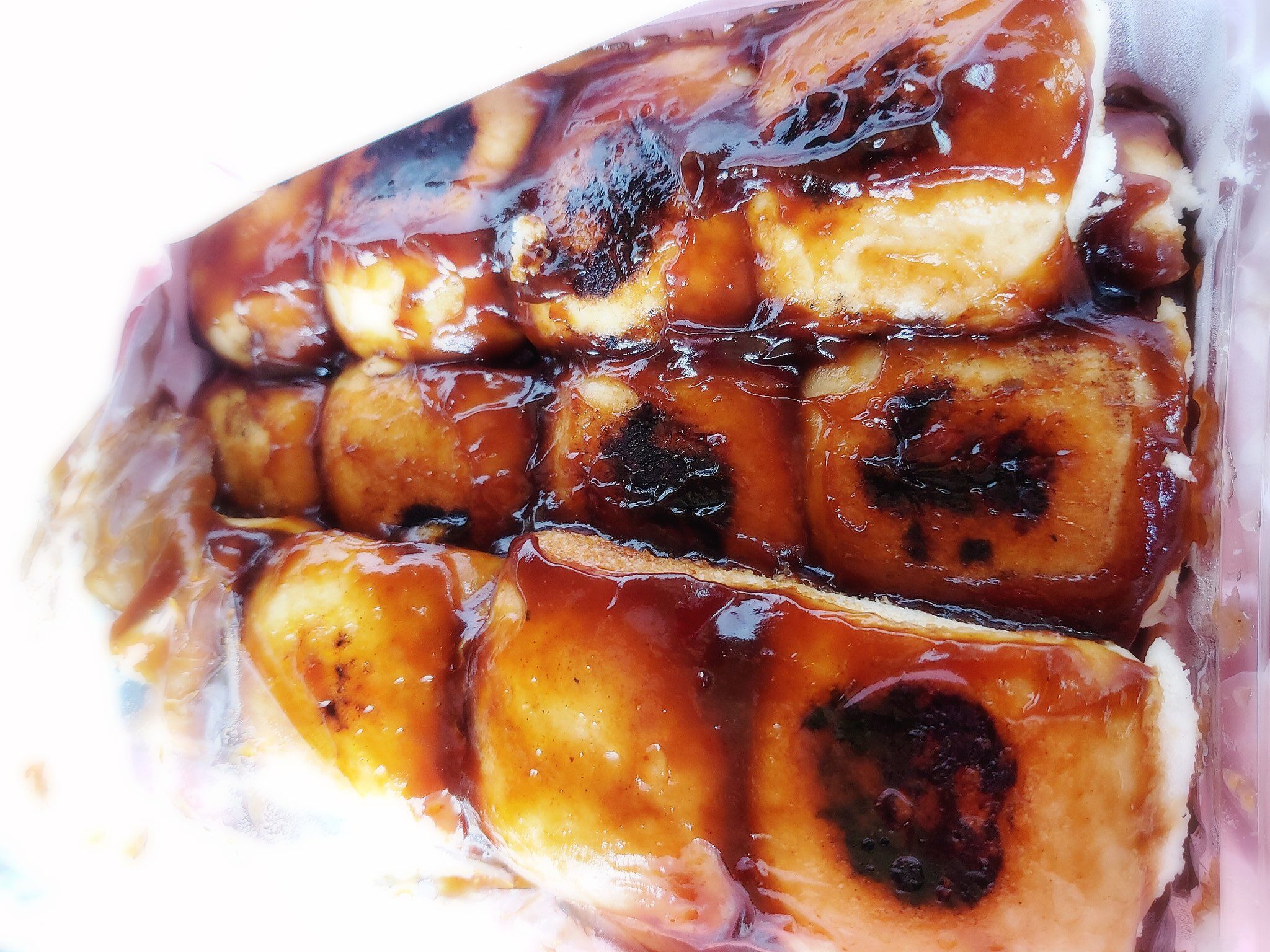 ふかふかの蒸しパンのような生地にあまじょっぱいみそだれこれでもかと塗りたくられている。まんじゅう4つで1串なので量が多く見えるが焼きまんじゅうは空気なので焼きそば1人前と焼きまんじゅう2本はぺろりといける。